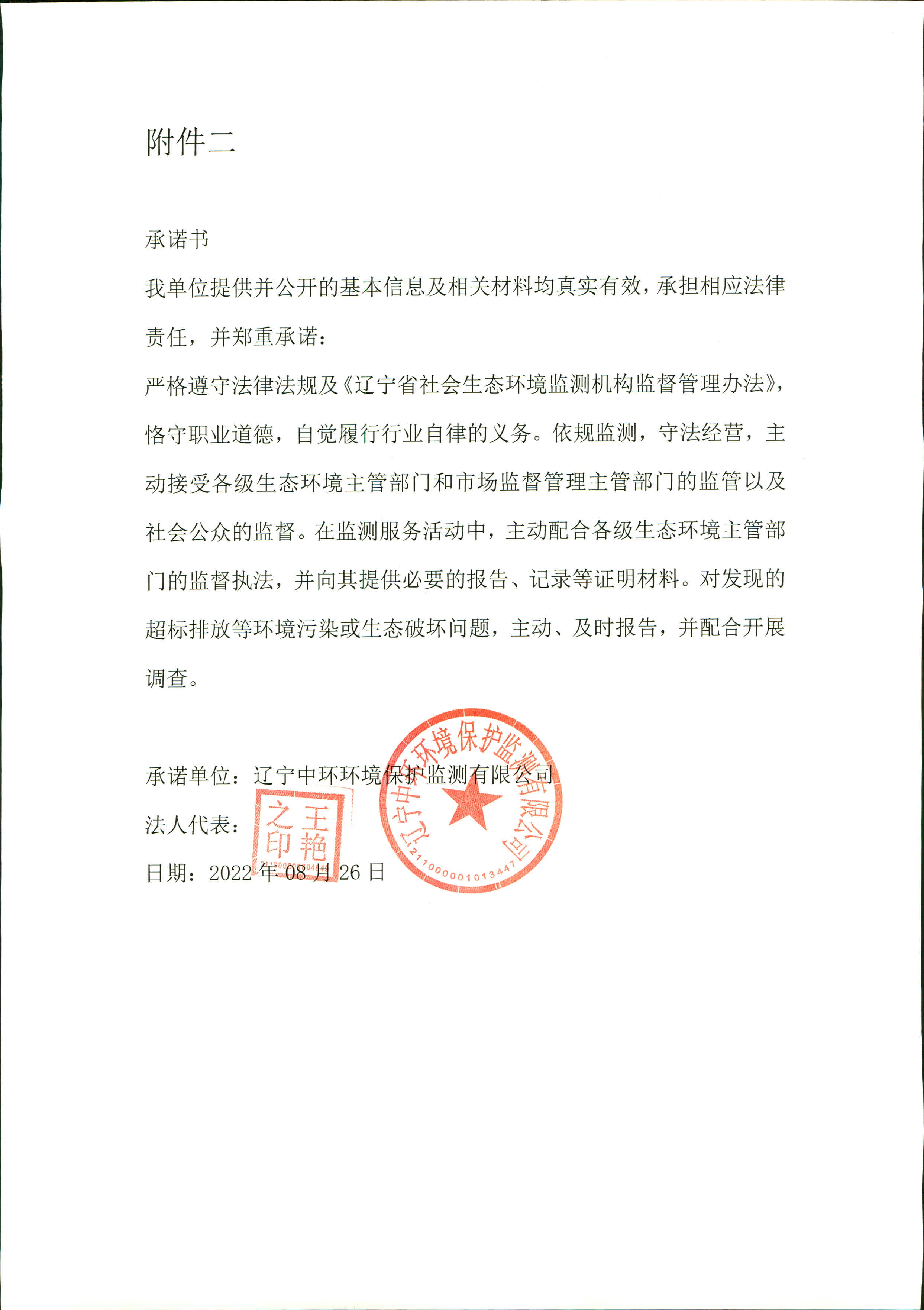 辽宁中环环境保护监测有限公司作为社会生态环境监测机构应文件要求向社会公开基本信息,如附件。
